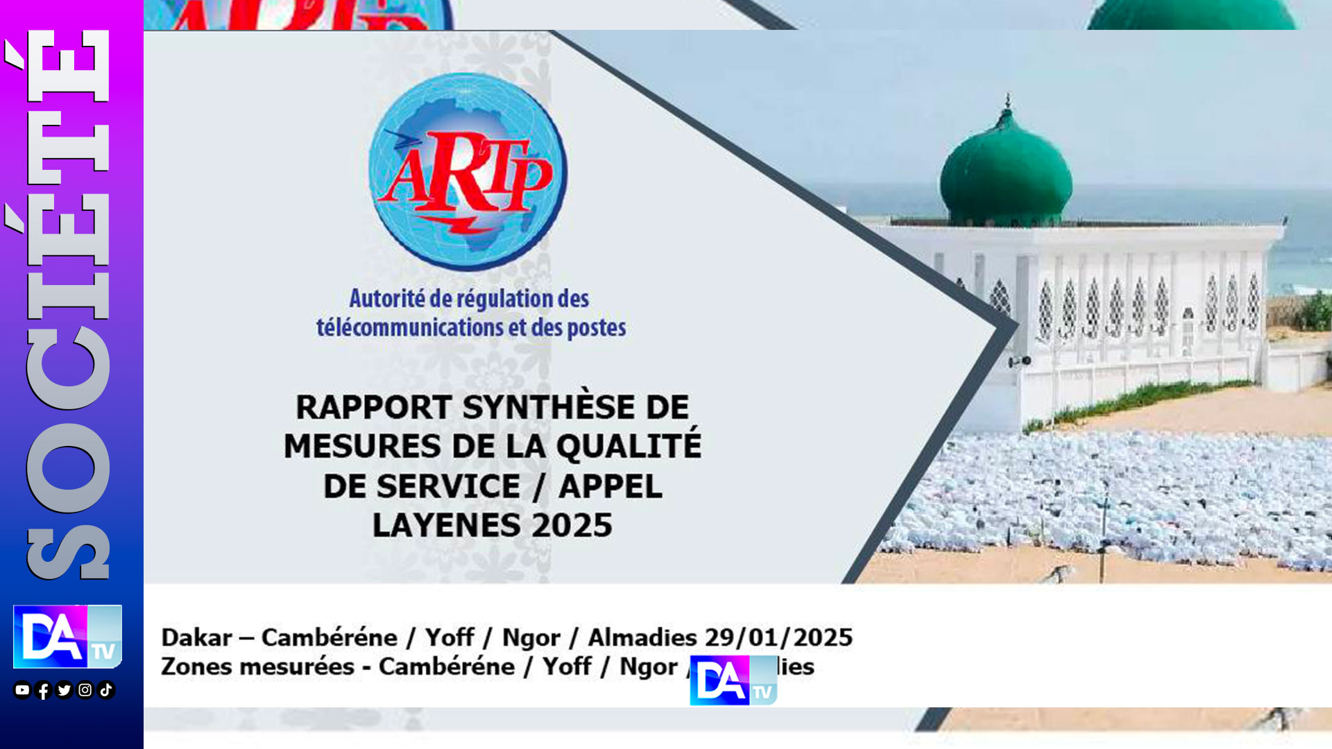 L'ARTP a publié un rapport sur la qualité de service des opérateurs téléphoniques lors de l'Appel des layènes 2025. Le rapport analyse la qualité des services vocaux et de données mobiles à Cambéréne, Yoff, Ngor et Almadies le 31 janvier 2025.