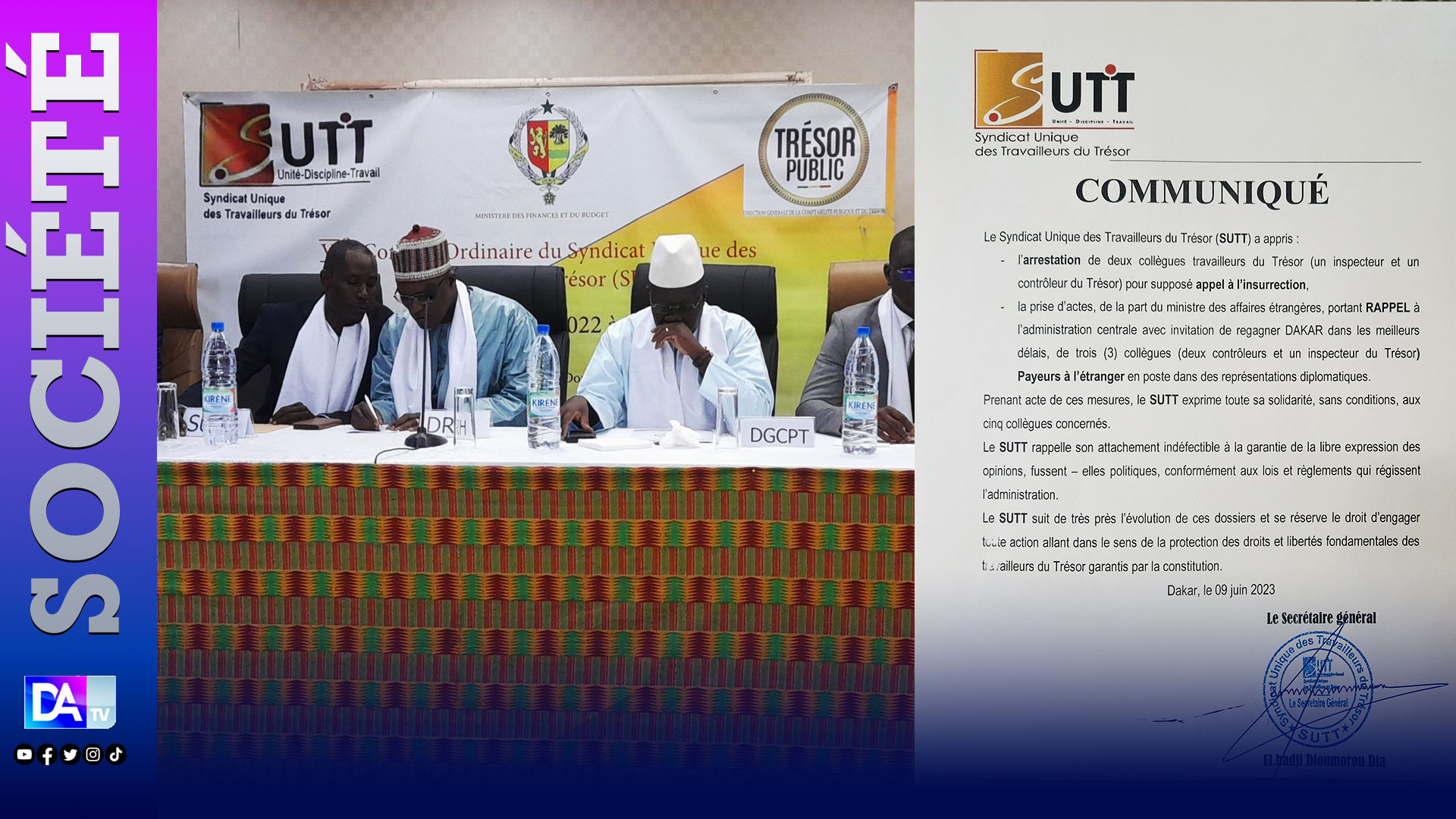 De son communiqué, le SUTT qui a pris acte, a exprimé sa solidarité envers ses 5 collègues tout en se réservant le "droit d'engager toute action allant dans le sens de la protection des droits et libertés fondamentales des travailleurs du trésor".