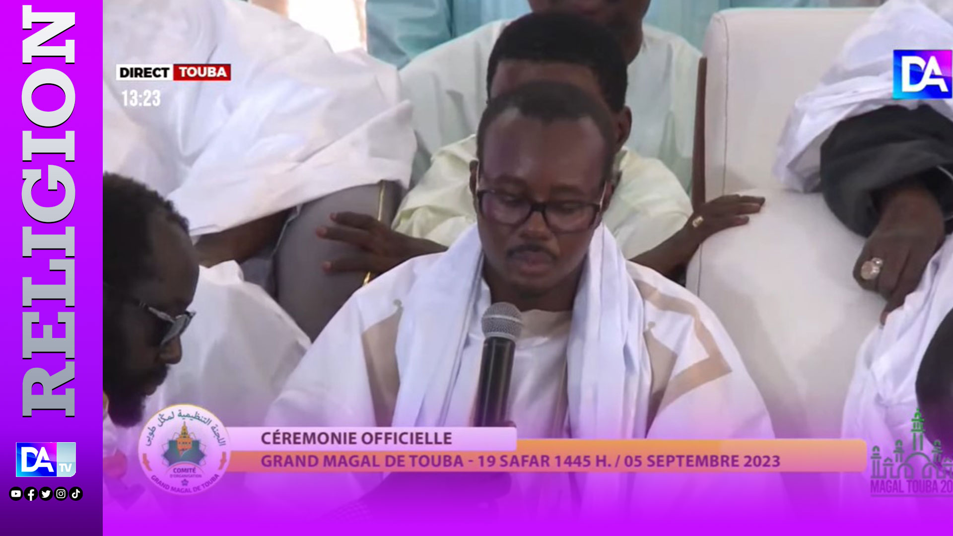 C’est devant une forte assistance composée essentiellement de délégations religieuses venant du Sénégal et d’ailleurs, du corps diplomatique, des membres du comité d’organisation en plus de la délégation officielle du gouvernement Sénégalais, etc… que Cheikh Bassirou Mbacké Abdou Khadre a délivré le message du Khalife Général des Mouride représenté par Serigne Abô Baraka Ibn Serigne Fallou à la cérémonie officielle.