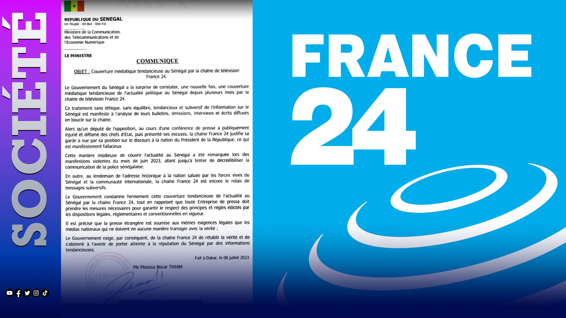 Selon le ministre de la Communication, des Télécommunications et de l'économie Numérique, il s'agit d'un " traitement sans éthique, sans équilibre, tendancieux et subversif de l'information sur le Sénégal "qui" est manifeste à l'analyse de leurs bulletins, émissions, interviews et écrits diffusés en boucle sur la chaîne". Pour exemple, le ministre de tutelle de rappeler les propos d'un député de l'opposition au cours d'une conférence de presse contre des chefs d'État et le traitement de ladite chaîne sur ce sujet. " La chaîne France 24 justifie sa garde à vue par sa position sur le discours à la nation du Président de la République, ce qui est manifestement fallacieux". Il en est de même pour la couverture de l'actualité au Sénégal lors des manifestations du mois de juin 2023 et " au lendemain de l'adresse historique à la nation saluée par les forces vives du Sénégal et la communauté internationale, la chaîne France 24 est encore le relais de messages subversifs".