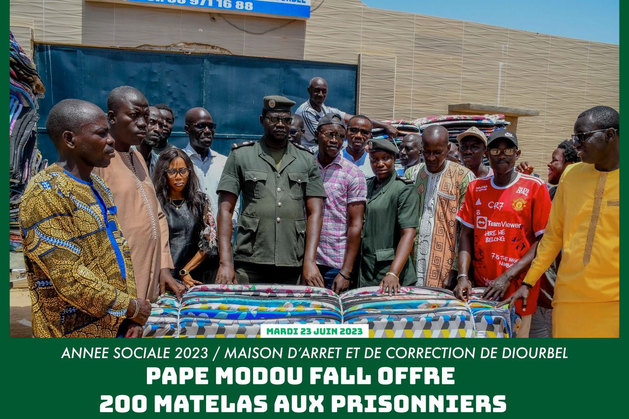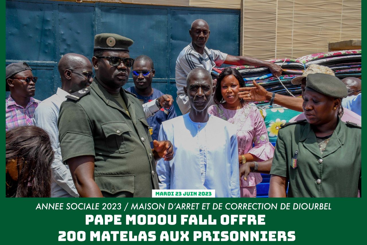 Le Directeur de l'Emploi a procédé, ce mardi 27 juin 2023, par le biais de ses collaborateurs, à un don de 200 matelas à la Maison d'arrêt et de Correction de Diourbel. Un acte de haute portée humanitaire consenti dans le cadre de la politique sociale 2023 initiée par le Leader de Dëgg Moo Woor et Coordonnateur national de la Coalition Républicaine Samm Sunu Rew, conformément aux instructions du Président Macky Sall.