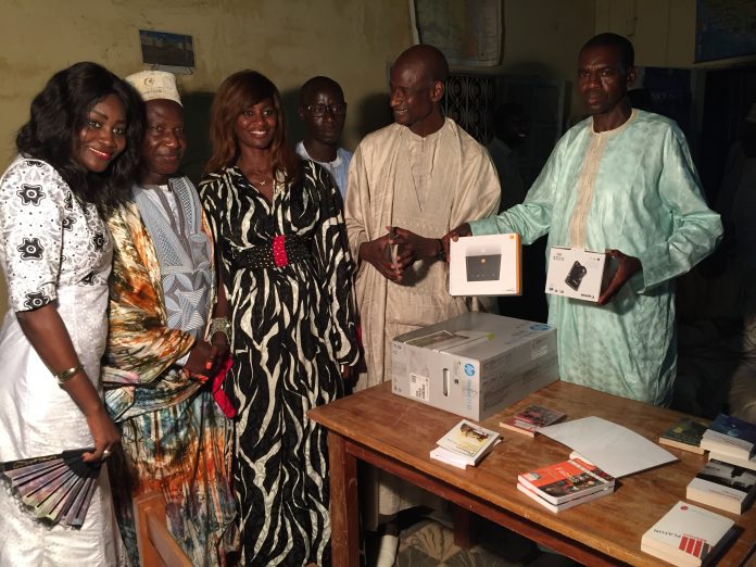 Le Maire de Khombole, Pape Mboup, et ses 2 adjoints, les anciens Maîtres et Profs de Awa Thiam, Horace Dacosta , coordinateur réseau Clac de la Thiès ( Ministère de la Culture), Niatam Ba, animatrice à Tfm, Magueye Boye, Agent aux Impôts de Dakar ont rehaussé de leur présence la cérémonie de remise de dons.