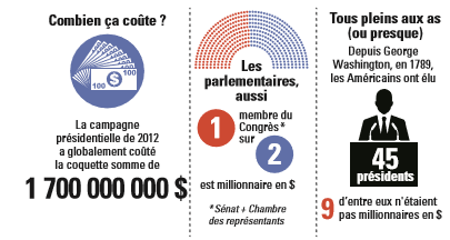 Les campagnes présidentielles coûtent de plus en plus cher : 1,7 milliard de dollars, par exemple, en 2012. Et les sponsors les plus fastueux, tels les frères Charles G. et David H. Koch (pétrole, chimie, finance, etc.) ou Sheldon Adelson (immobilier, jeu), sont devenus des figures incontournables, quoique peu transparentes, de la vie politique américaine.