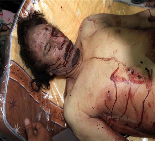 Une photo diffusée par l'AFP du corps de Kadhafi à Misrata ( PHOTOS ) - 20/10/2011