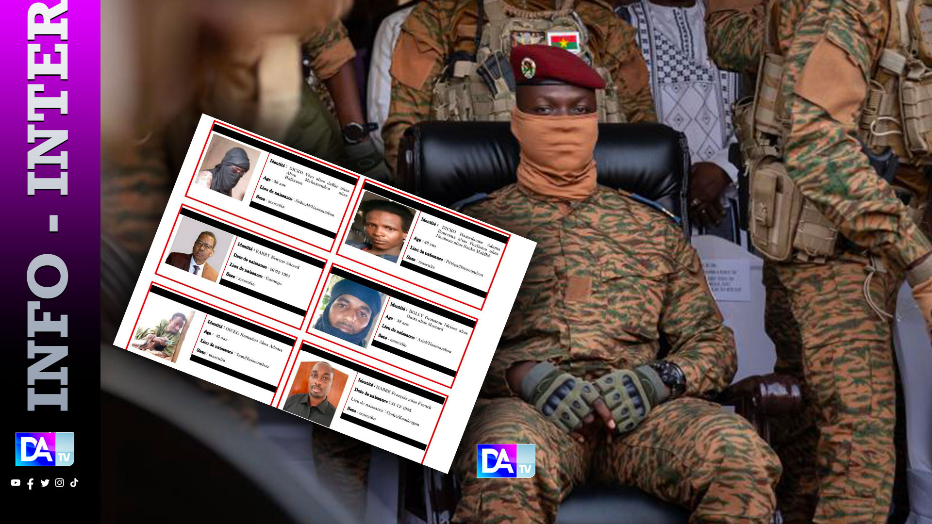 Cinq lanceurs d'alertes ou cyberactivistes, en exil hors du Burkina, très critiques envers la junte, sont également visés par l'avis de recherche: Naïm Touré, Ouédraogo Aminata alias Aminata Raschow, Coulibaly Oumar, Maixent Somé et Barry Al Hassane.
