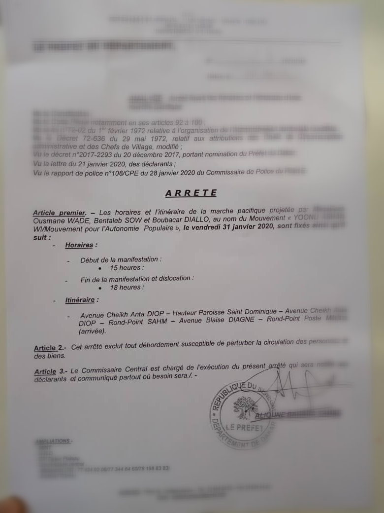 Le préfet de Dakar autorise la marche du collectif Nio Lank prévue demain à 15 heures. Le collectif Nio Lank prendra le départ à partir de l’université Cheikh Anta Diop jusqu’au rond-point de la Poste de Médina.