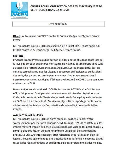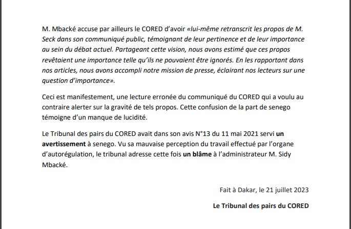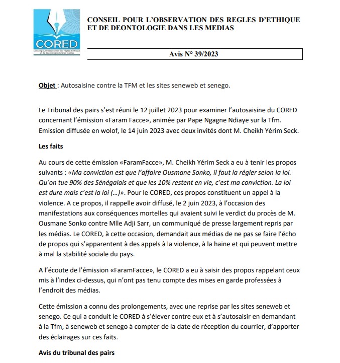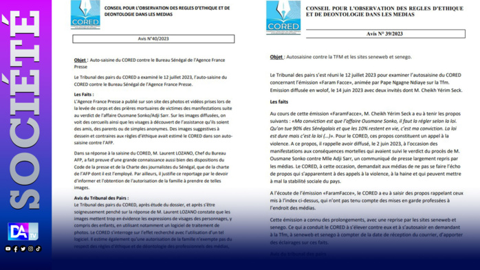 ![Manquements à l'éthique et à la déontologie : Voici les deux avis du tribunal des pairs du Cored [Décisions du 21 Juillet 2023] Manquements à l'éthique et à la déontologie : Voici les deux avis du tribunal des pairs du Cored [Décisions du 21 Juillet 2023]](https://www.dakaractu.com/photo/art/default/74527983-51830950.jpg?v=1691668746)