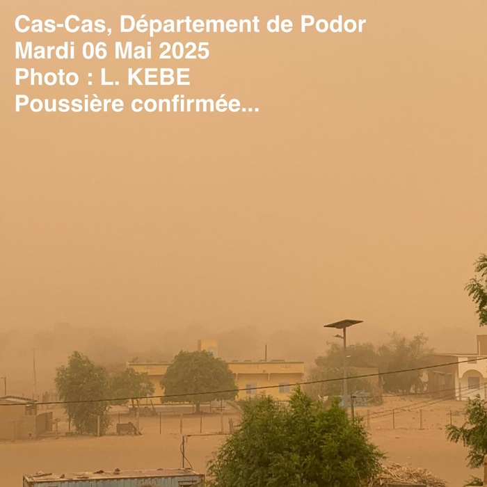 C’est notamment le cas de Cas-Cas, une localité située dans le département de Podor, où une épaisse couche de poussière a été observée ce matin. Une photo prise sur place témoigne d’un ciel voilé, presque opaque, rendant la visibilité faible et posant un risque pour la santé respiratoire des habitants.