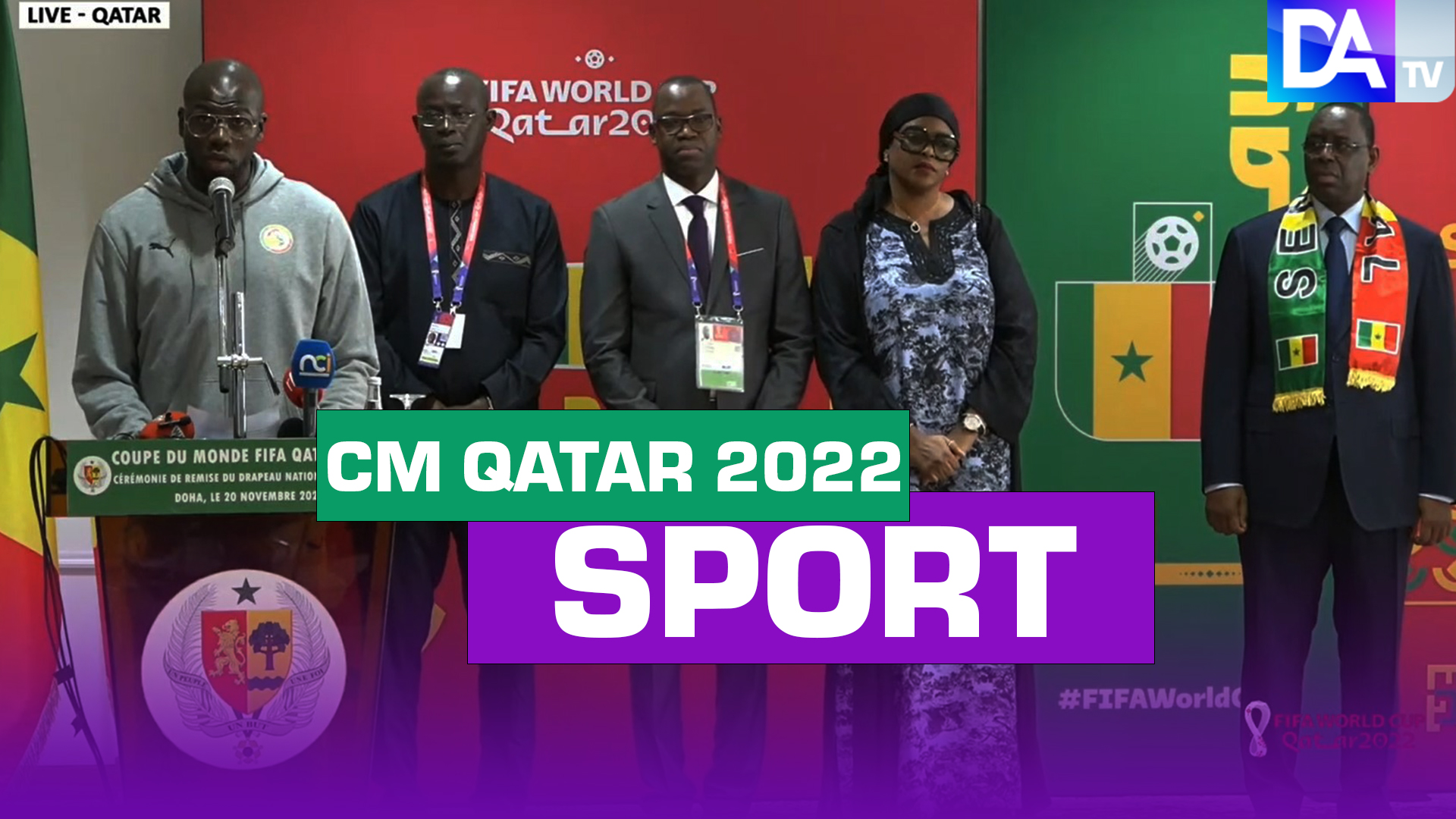 Monsieur le Ministre des Sports, Messieurs les Ministres, Monsieur l’Ambassadeur du Sénégal au Qatar, Monsieur le Président du Comité National Olympique Sportif Sénégalais, Monsieur le Président de la Fédération Sénégalaise de Football, Messieurs les membres du Comité exécutif de la Fédération sénégalaise de football, Cher coach Aliou Cissé, el tactico, Chers lions, Chers membres du 12e Gaïndé, Allez Casa et Léboug gui, Mesdames, Messieurs, Les contraintes liées à nos agendas respectifs ne m’ont pas permis de vous recevoir au Palais de la République, pour vous remettre le drapeau national, comme il est de coutume à la veille de vos compétitions. Pour commencer, je voudrais exprimer ce que chacun de nous ressent ici : Sadio Mané, le Ñañthio de Bambali nous manque. Son ombre plane sur cette cérémonie. Mes premiers mots seront donc pour toi Sadio ; pour te dire que nous t’aimons, nous sommes de tout cœur avec toi, nos pensées et prières t’accompagnent pour un prompt rétablissement. Nous le savons, le Ñañthio, parce qu’il aime prendre des risques pour faire gagner son groupe, est exposé aux blessures. Mais nous savons aussi que le Ñañthio garde toujours haut le moral, pour revenir au plus vite dans le groupe, encore plus fort et plus combatif. Si tu as raté cette campagne, d’autres batailles t’attendent, pour lesquelles nous aurons encore besoin de ta contribution décisive. Alors, reviens nous vite ! An nom de la nation, de tes coéquipiers et de ton encadrement, je te dis : Allama Allah yeesso kaïrola Sadio !Chers Lions, En tenant cette cérémonie ici, à Doha, dans votre tanière, j’espère que la motivation n’en sera que plus grande pour vous, puisque nous sommes au plus près de votre terrain de chasse, pour le trophée objet de toutes les convoises. Après les éditions 2002 et 2018, la nation est fière de vous voir inscrire pour la 3e fois le nom de notre pays sur la carte du football mondial. Vous devez cette performance exceptionnelle d’abord à votre fighting spirit. Certes, l’État et votre encadrement sont toujours à vos côtés, pour vous accompagner et vous mettre dans les meilleures conditions. Mais quel que soit l’investissement consenti, une compétition se gagne toujours sur le terrain. Vous l’avez brillamment réussi avec une qualification arrachée de haute lutte, dans un match à couper le souffle, moins de deux mois après une autre confrontation aussi épique, à l’issue de laquelle vous-vous êtes installés sur le toit du football continental. Du reste, ce brillant parcours est conforme à votre rang de première équipe africaine du classement FIFA depuis maintenant 6 ans. C’est dire que vous êtes entrés dans la planète foot par la grande porte, grâce à votre talent, votre endurance physique et mentale, votre esprit d’équipe, ainsi que la discipline et la rigueur que requiert la haute compétition. Vous aurez grandement besoin de ces qualités pour affronter des adversaires tout aussi motivés. Chaque match sera en quelque sorte une finale ; et comme le dit l’adage, la balle est ronde pour tout le monde ; et aucun match n’est gagné, ni perdu tant qu’il n’est pas fini. En vrais Lions, ne craignez personne, mais respectez tous vos adversaires. C’est une condition essentielle pour aller loin en compétition. Nous vous faisons confiance, car avec votre coach, vous êtes tous des professionnels aguerris. Vous mesurez le jeu et l’enjeu. À chaque touche de balle, vous porterez l’espoir de tout le peuple sénégalais. C’est pourquoi j’appelle toute la nation à l’union sacrée, pour faire bloc-équipe avec nos Lions. Quand le 12e Gaïndé, Allez Casa et Lébou gui donneront le ton, au son des tam-tam, des Djembés et des Assikos, nos Lions doivent sentir que de Bambali à Dimboli et Barkédji, c’est tout le Sénégal qui bouge, tout le Sénégal qui vit et vibre à leur rythme, pour les galvaniser et les encourager. Quant à vous, chers Lions, sous les couleurs nationales, vous êtes en mission. Je vous exhorte à aller aussi loin que possible, pour honorer la nation et votre coéquipier qui aurait tant aimé être avec vous. Vous connaissez le mot de passe : Dem ba Jeex, wuti ndam li. Vous en avez toutes les capacités, car l’esprit du Lion, c’est toujours la gagne, toujours la rage de vaincre, jusqu’à l’objectif final. Pour ce faire, je vous engage à cultiver à chaque instant nos valeurs ancestrales de jom, fit, fouleu ak fayda.