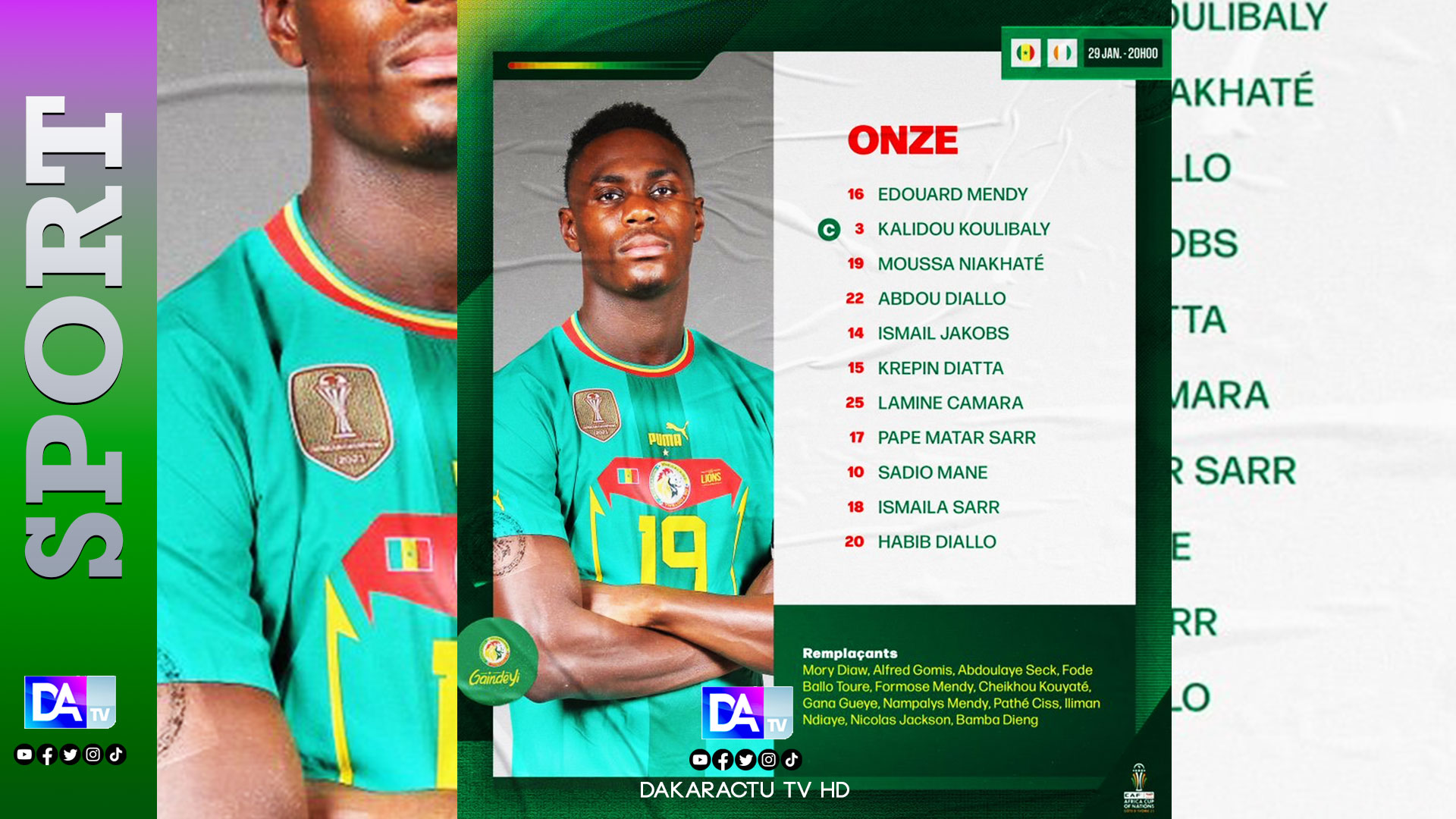 Le sélectionneur Aliou Cissé a refait confiance à Abdou Diallo qui va jouer un rôle décisif dans le dispositif tactique des Sénégalais. En effet, le défenseur central aura en charge la fonction de sentinelle devant la défense en plus de devoir former le trio défensif avec Kalidou Koulibaly et Moussa Niakhaté dans les phase à 3-5-2.