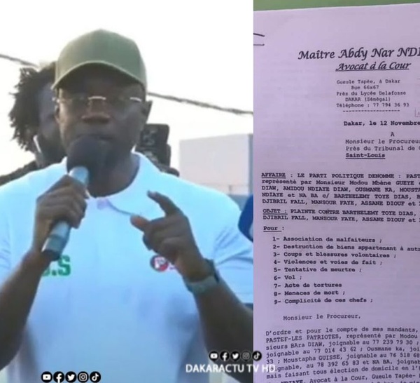 Le parti Pastef les patriotes vient de déposer, ce mardi 12 novembre, une plainte auprès du procureur de la République contre les membres de la coalition Sam Sa Kaddu. Cela, suite aux violences...