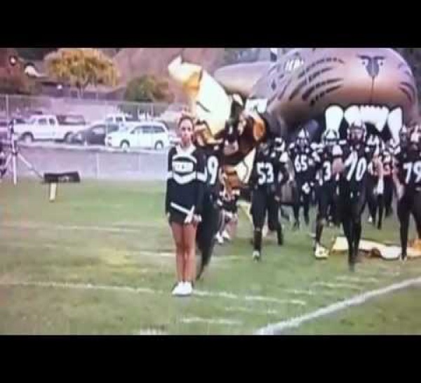 Une pom-pom girl du lycée de San Luis Obispo, en Californie, a eu un moment d'inattention, se plaçant devant l'entrée des joueurs de football américain lors d'un match. Une erreur qu'elle a payé...